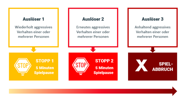 Ab der Rückrunde steht unseren Schiedsrichterinnen und Schiedsrichtern ein zusätzliches Instrument der Deeskalation und Gewaltprävention zur Verfügung. Mit bis zu zwei Spielunterbrechungen von jeweils fünf Minuten haben unsere Unparteiischen in Zukunft die Möglichkeit auf wiederholt aggressive Spielsituationen zu reagieren. Dabei ist es unerheblich, ob die Aggressionen von Spielern, Funktionären oder dem Publikum ausgehen.