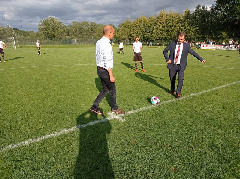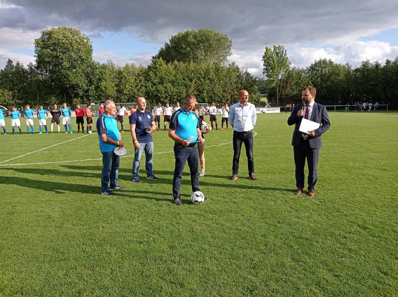 Am Freitagabend wurde auf dem schönen Sportgelände des SV 06 Siebleben das erste Spiel der neuen Fußballsaison 2021/22 in der Kreisoberliga zwischen dem Gastgeber Siebleben und den Sportfreunden von FSV Drei Gleichen Mühlberg angepfiffen. Nach den Begrüßungsworten von Landrat Onno Eckert und KFA Vorsitzenden Thomas Philipsen nahmen der Bürgermeister Ulf Zillmann und Onno Eckert den Ehrenanstoß in die neue Saison vor. Martin Falk als Schiedsrichter und seine beiden Assistenten Julius Gimm und Pascal Dietsch leiteten diese Partie souverän. Nach 90 Minuten freuten sich 325 Zuschauer über den klaren 5:2 Heimsieg ihrer Siebleber Mannschaft . In der Halbzeitpause ehrte der KFA den Verein Siebleben 06 für 100 Jahre Jubiläum aus dem Jahre 2020, verspätet wegen der Corona bedingten Umstände. Der Ehrenamtsbeauftragte Peter Poltermann , der Vorsitzende Thomas Philipsen und der 2.Vorsitzende Ortwin Schmeling überreichten an die Vereinsvertreter das DFB Relief und einen Check über 500.-€, die Ehrentafel des TFV und Fußbälle, sowie vom KFA eine finanzielle Zuwendung über 250.-€. Nun wünschen wir uns alle eine störungsfreie Fußballsaison , spannende Spiele und viel Fairness auf allen Plätzen.